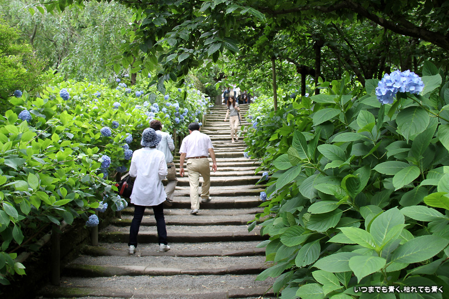 2009年7月に初めて訪れて明月院ブルーの紫陽花に魅せられた私。2年ぶりにその感動を味わおうと思って、明月院に行ってきました。しかし、今年の明月院の青い紫陽花は元気がなく、青色も明月院ブルーにしては薄い感じがしました。数日前からの猛暑にやられていたのと、色が濃くなるにはもう少し時間が必要だったのかも知れません。仕方がありませんね。そのせいか今年は他の紫陽花に目が行って、明月院にも青色の紫陽花だけではなくいろいろな種類の紫陽花があるのだなぁということがわかりました。でもやっぱり、明月院では、明月院ブルーの紫陽花を見たかったですね。残念でした。