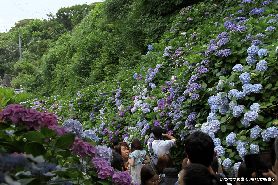 あまりに素晴らしい景色でしたので、一日目に続き二日目もやってきました。今回は、東結界(長谷寺側参道入口)から入り、西結界(極楽寺側参道入口)から出るということにしましたが、振り返って由比ガ浜の見える景色の撮影が多くなるので、結局どちらから入っても同じだとわかりました。景色はとても美しいのですが、結局人が多いのは日が変っても同じでした。