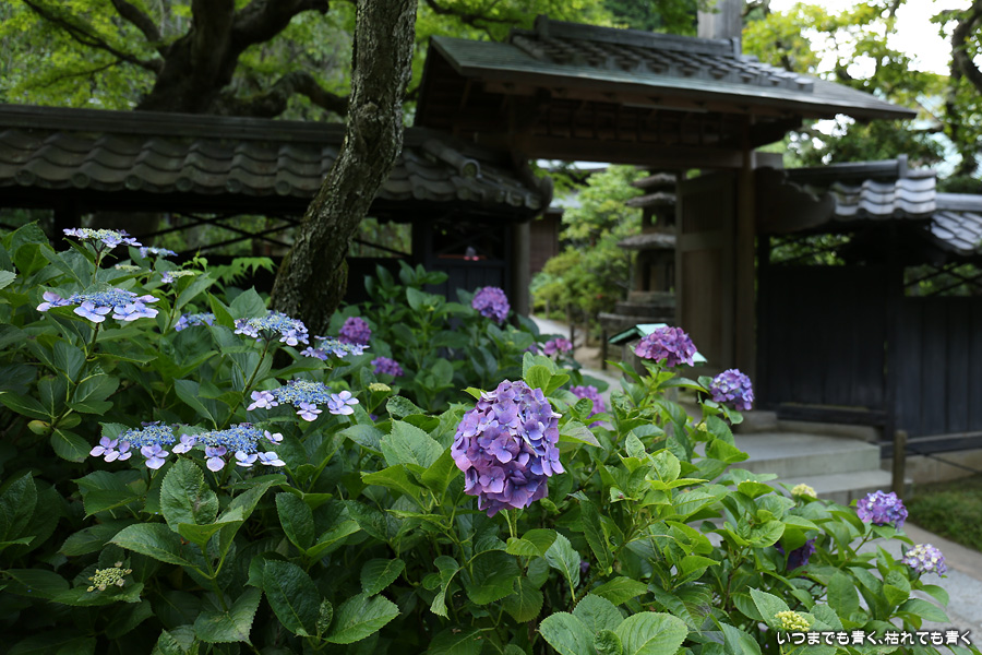縁切寺こと東慶寺は、紫陽花の咲きがよくないですね。例年はこの石段の両側は紫陽花でいっぱいなのに、今年はほとんどありません。閉門10分前だったなのに、参拝と御朱印の親切な対応をしてくださって、感謝でした。