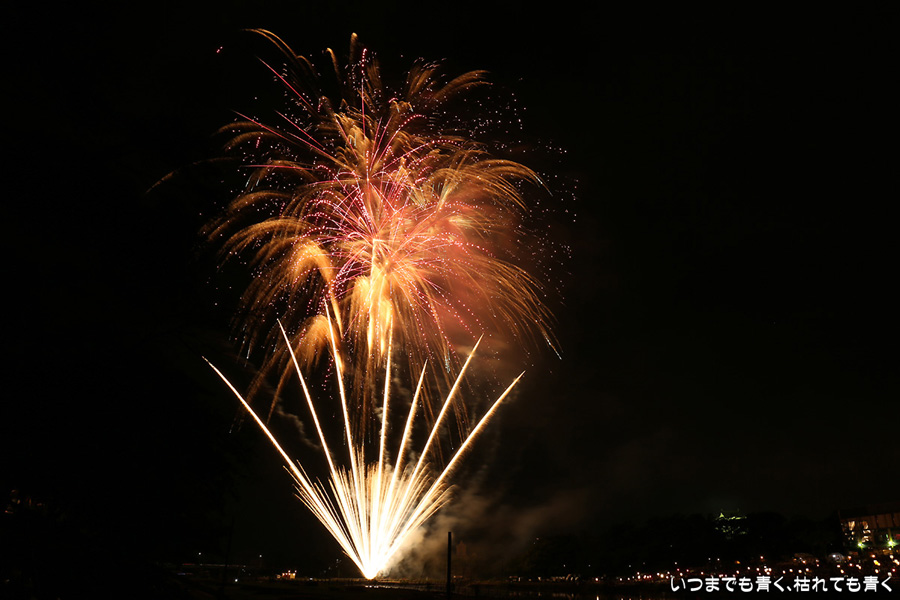 にあげました。花火鑑賞だけでなく、写真撮影趣味のおじさんたちとも話をしたりして本当に楽しいひとときでした。また来年も同じ場所で会いましょうと約束して別れましたが、病気が治り来年も行くことができればいいのですけどね。