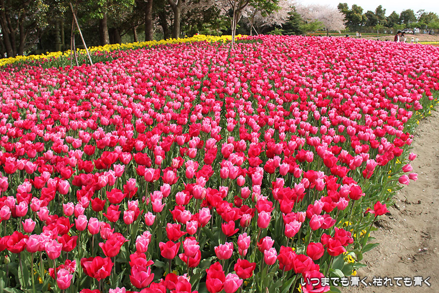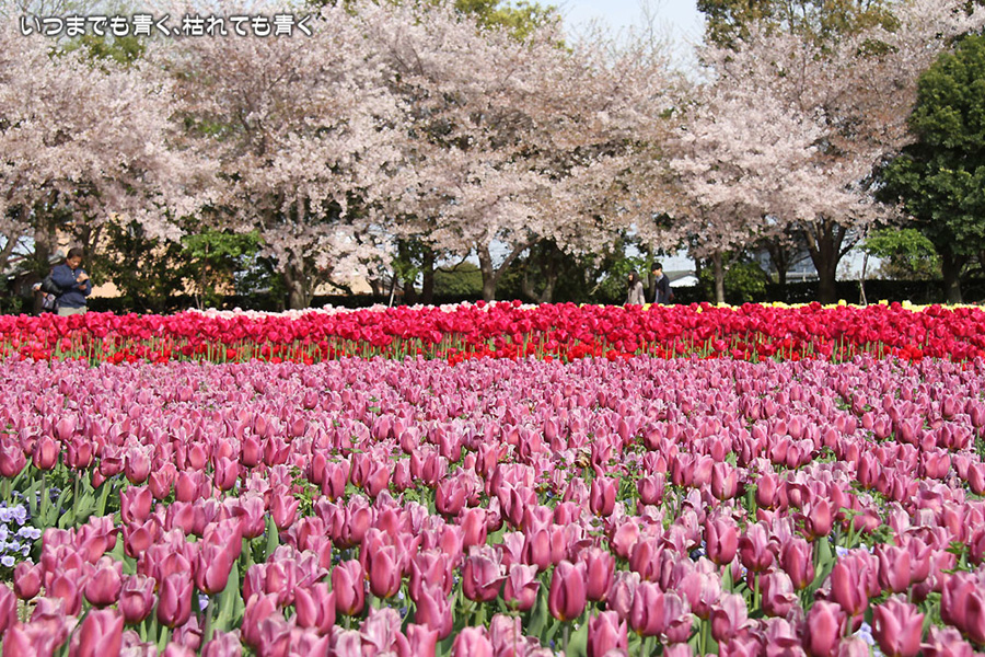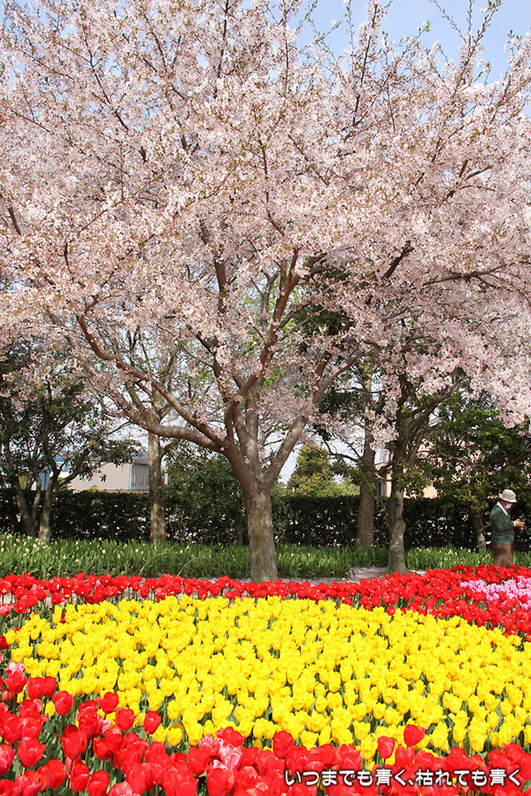 盛大に咲き誇るチューリップを見たくて、「なばなの里」に奥さんと長女と3人で行ってきました。「チューリップまつり」の会場のチューリップは、昨日の「奥殿陣屋」のチューリップとは桁違いで、圧倒されるほどの広さと数と種類です。案内によると、190品種、180万球のチューリップが植えられているとのことです。桜がまだ残っていましたので、桜とチューリップの競演ということで一緒に写真を何枚か撮ったのですが、主役である桜とチューリップを対等の配置で撮った写真は、どちらつかず中途半端な写真になってしまいました。主役級を一緒に写真に撮る場合には、どちらを主役で脇役かを決めた構図でないとダメだなぁということを勉強しました。また、これだけチューリップの数が多いと、どう何を撮れば面白い写真になるのか全然わからずじまいで、なんともセンスのない私です。どちらかというと、長女の写真のほうが構図的には面白いものが多かったりするのです。ちょっと悔しい気もしますが、ちょっと長女を見直したりもしています。掲載写真は、昼間とライトアップされた夜の写真があります。また、Page2の最後の10枚は「チューリップまつり」会場外の園内のチューリップの写真です。