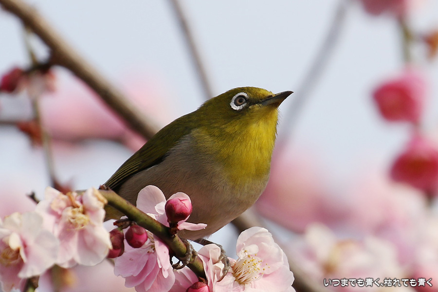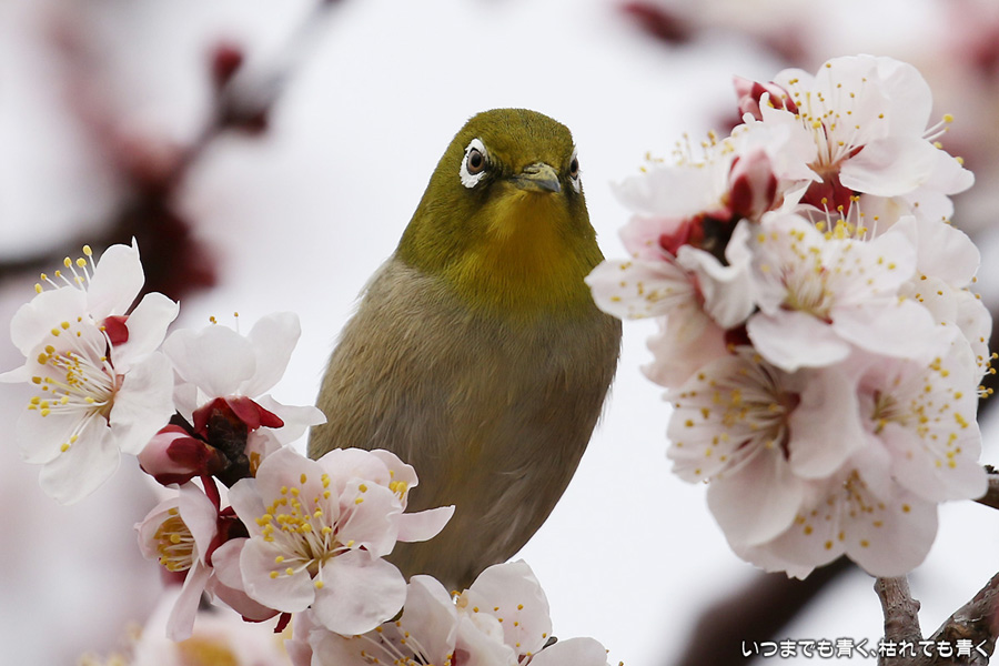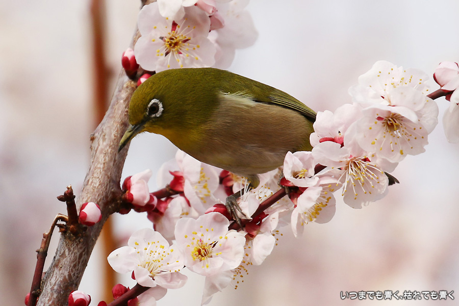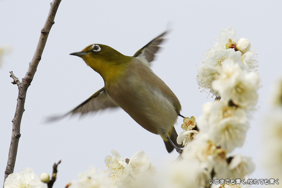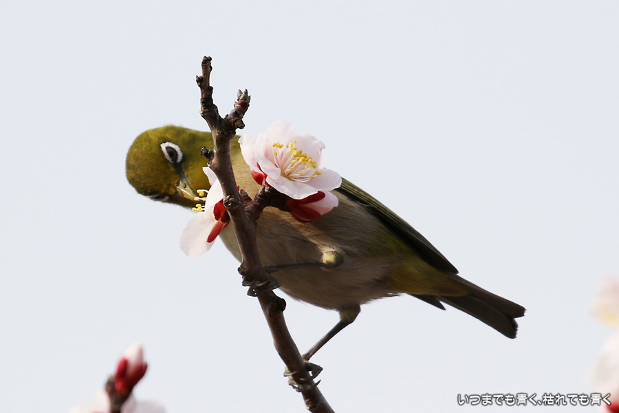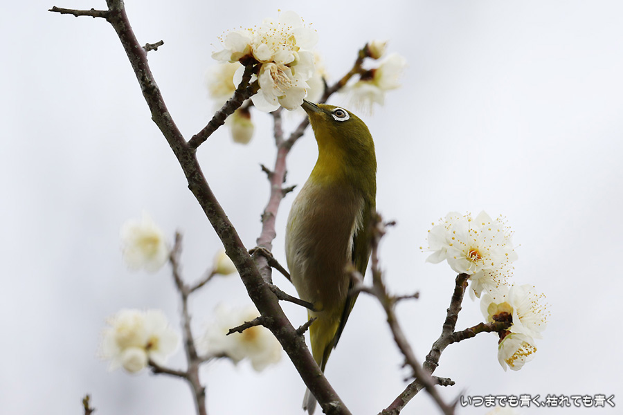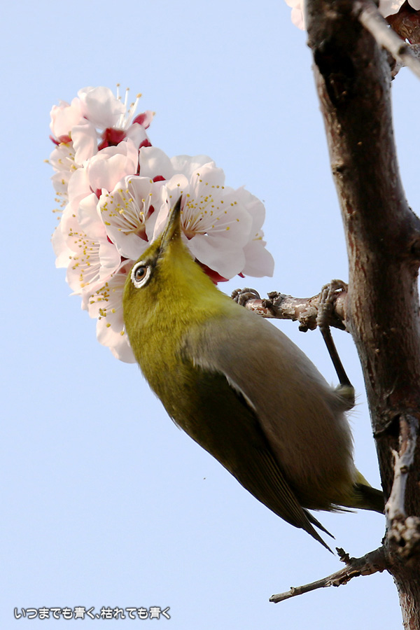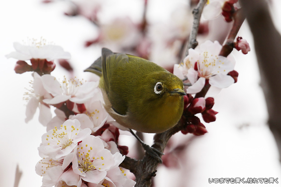 2016年3月5日に撮影した、愛知県豊田市・平芝梅林公園のメジロの写真です。