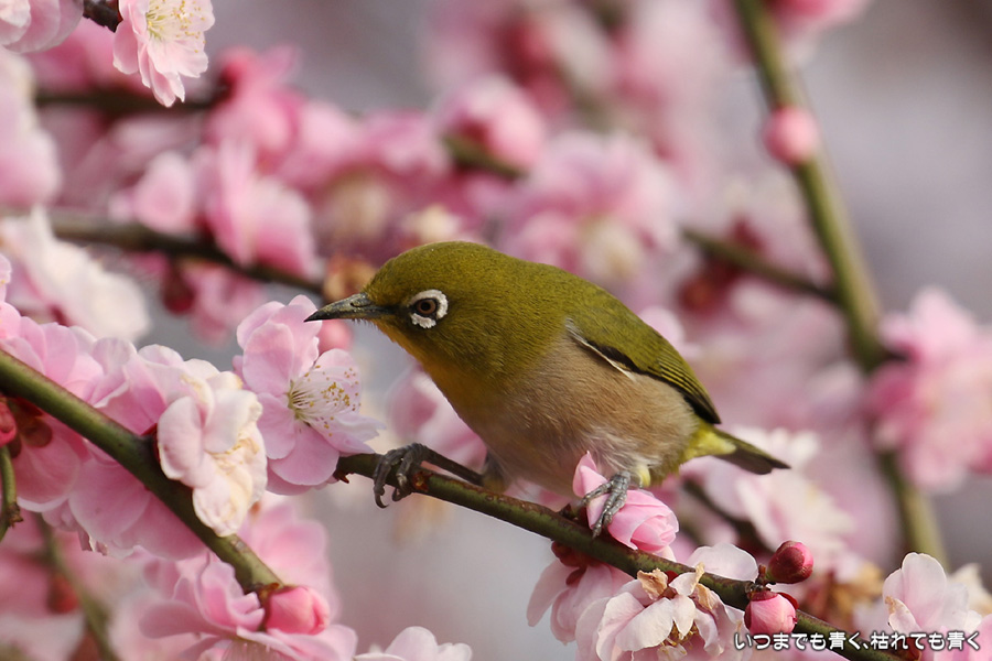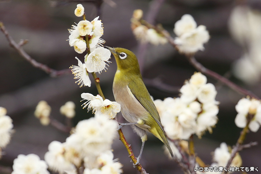 梅林公園は梅の花も素敵でしたが、メジロがたくさん来ていてアマチュアカメラマンたちのモデルになってくれていました。4時間くらいメジロたちと撮影会をしましたが、400mm望遠を付けて3kg近くになったカメラをずっと構えていたので、右腕と腰が痛くなってしまいました。写真撮影にも体力が必要です。写真はトリミングをしています。一部ピントがあまいものもありますが絵が面白いので載せました。