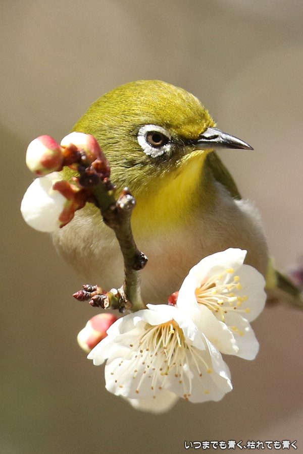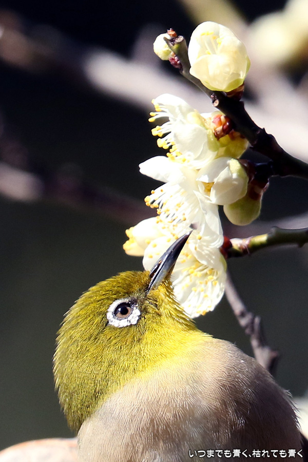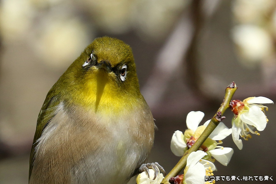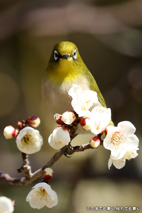 2017年3月3日に撮影した、愛知県豊田市・平芝梅林公園のメジロの写真です。