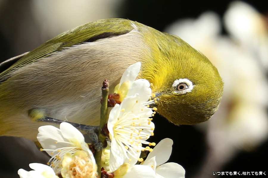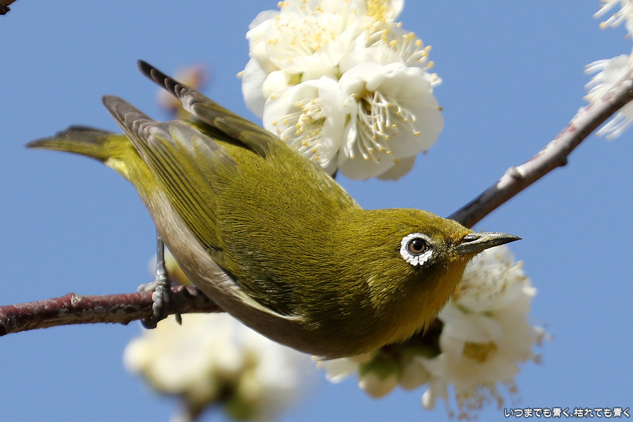 この日は、メジロたちがひっきりなしに集まってくれて、時間を忘れてレンズを向けて4,600枚以上撮影しましたが、素早く動くメジロたちの可愛らしい一瞬を切り取ることができた写真はほんの一部でした。今回は、アップに耐えられる写真を選んでみました。Page2の最後の3枚はジョウビタキです。