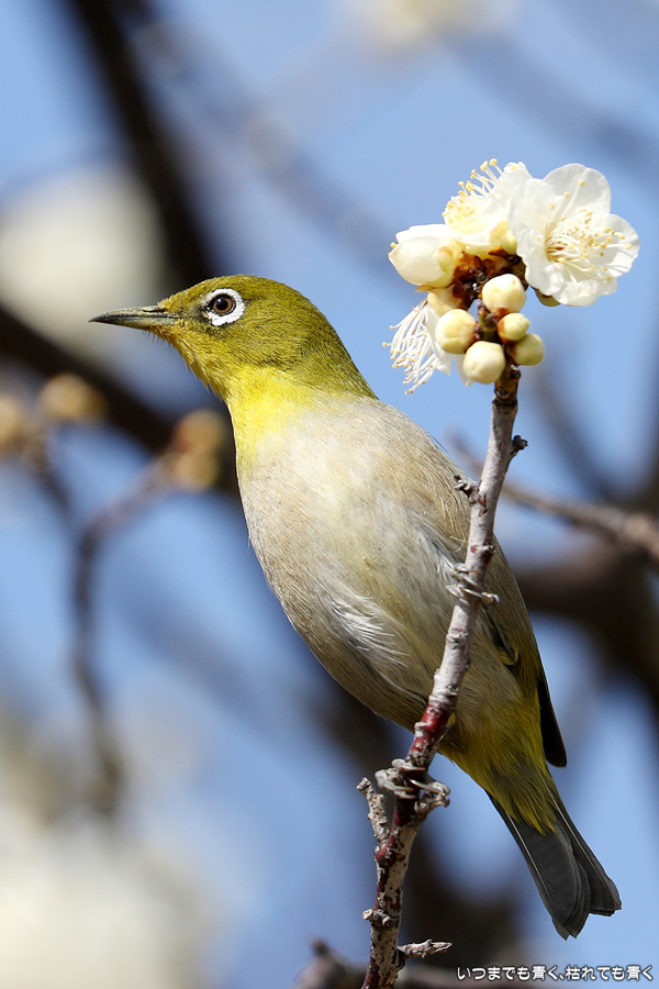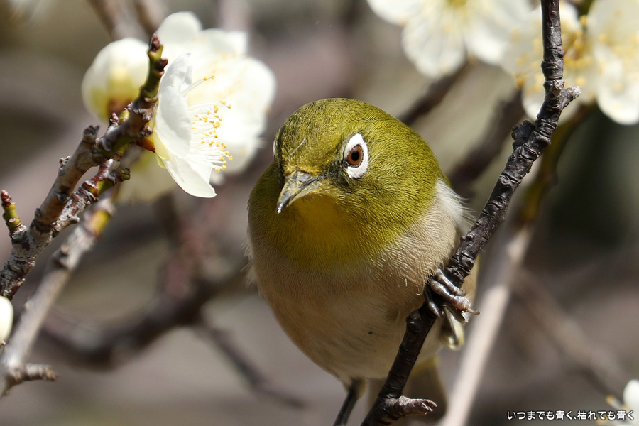 2021年2月27日に撮影した、愛知県豊田市・平芝梅林公園の梅に集うメジロの写真です。