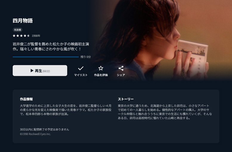 発熱した時に療養中に観た映画です。松たか子の初主演作というので興味を持ちました。また、67分という短い映画でしたので体の負担にもならずに気楽に観ることができるのも選択した理由です。