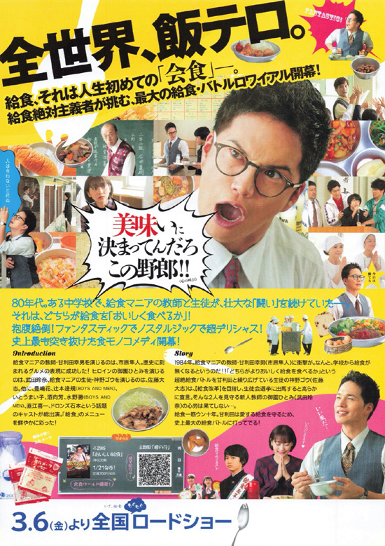 1984年、教師の甘利田幸男(市原隼人)のもとに給食廃止のニュースが舞い込み、給食マニアの彼にとって一大事と化す。一方、甘利田と“どちらがよりおいしく給食を食べるか”というバトルを繰り広げてきた生徒の神野ゴウ(佐藤大志)は給食革命を目指し、生徒会選挙出馬に踏み切る・・・ |