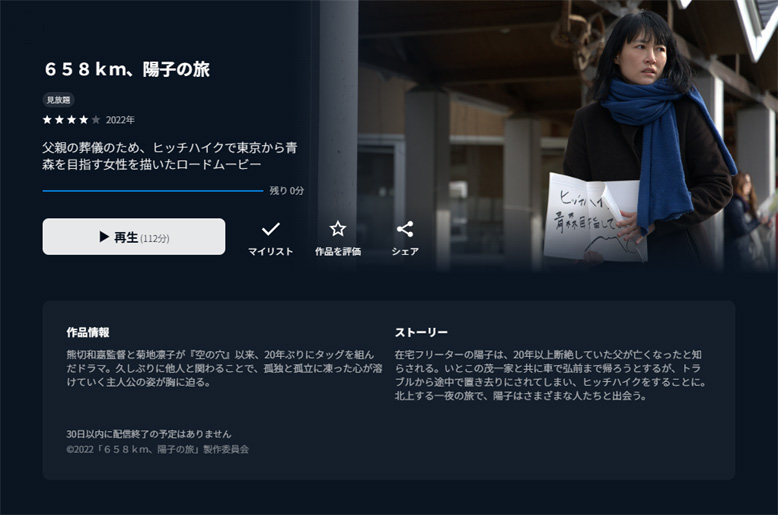 658kmの陽子の旅は、父の死をきっかけにヒッチハイクをする状況になってしまったことで、意識の中で過去の父親に縛られていたことから解放されて、あらたな人生の始まりとなる旅だったわけですが、誰にもそういうきっかけは自分の行動次第で身の回りにあるのかもしれないと思わせてくれる映画でした。 |