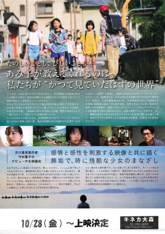 こういう子供たちは、悪意もなく素直に生きているだけなのに、普通ではないということで特別視されて迷惑がられるということを、いつも頭に置いておかないといけないのかなと思いました。「ルート29」と違って、この映画は社会の課題を突きつけてくれるようで、良かったなと思いました。このあみ子を演じた大沢一菜が「ルート29」のハルであり、同じような境遇にあるということで、この映画が「ルート29」の続編といってもいいのかなという感じはしましたが、訴えてくるメッセージや映画の違和感などには大きな違いがあると感じました。 |