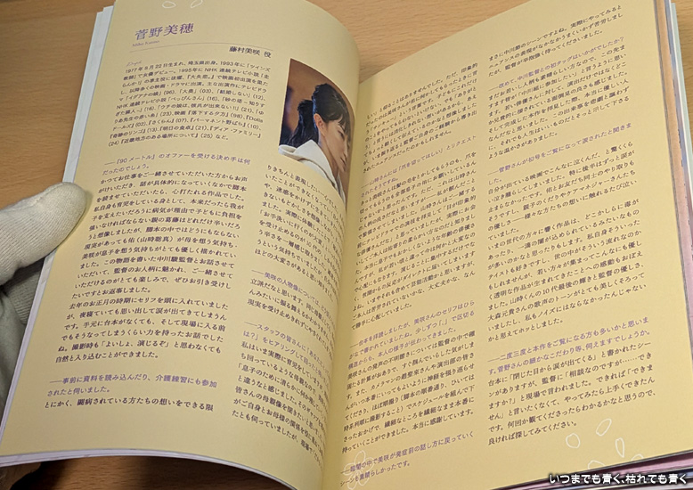 この映画は、家族の介護という問題とともに親子の愛情をテーマにしていますが、もしそんな状況になったら、お互いがしっかりと会話し相手を思うことの大切さも感じましたし、会話ができない状態だったらどう考えればいいのかとか、話ができても苦労や負担のほうが強く感じてしまったらどうすればいいのかとか、いろいろと考えさせられました。自分の母親がすこしボケてきただけでイライラとしていた自分を思い起こし、家族の愛情を持ち続けることの難しさを感じました。そういう時のために、健康で普通の会話ができている時に、しっかりと話をしてお互いの愛情や大切さを深めておくことが一番大切なのかもしれません。