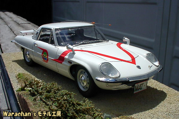 リアクオータあたりの曲面がなんともセクシーで魅力的であり、あらためてベース車であるコスモスポーツの美しさを認識しました。そのうち、コスモスポーツのノーマル仕様も作ろうかなと思っています。なお、ノーマルで組むときも、キットはマットビハイクルのキットを買った方が得です。ノーマル仕様の部品もはいって価格はほぼ同じですから。それになんといっても、キットが新しいです。 |