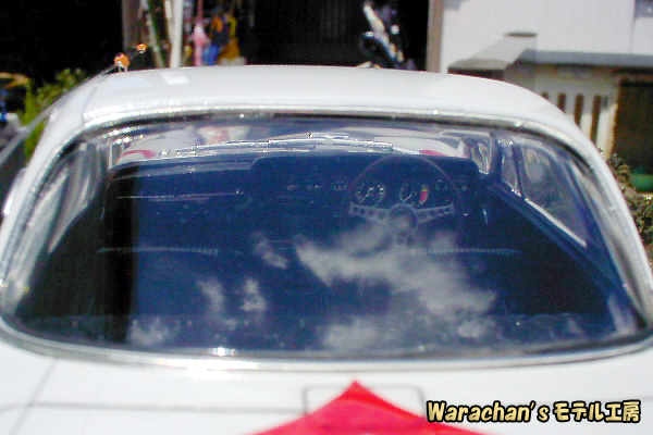 作品はほとんど素組みに近いですが、ワイパーは太くて目立つので細く削り、はげたメッキ部分にはメタルックをはって修正してあります。