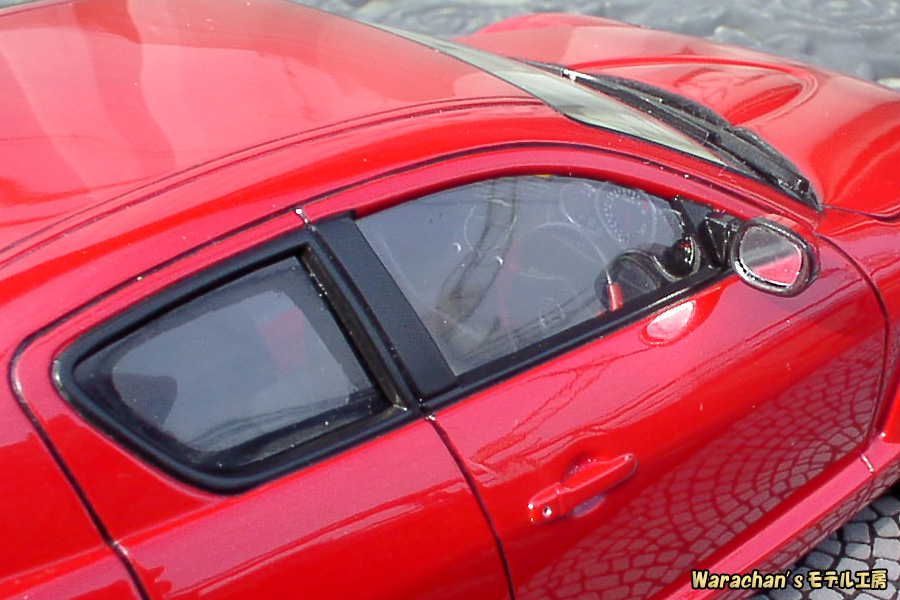 ボディカラーは実車のベロシティレッドマイカですが、マイカが細かくソリッドの赤とそんなに変わりありません。