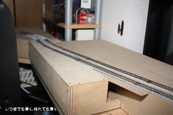 レイアウトの高低差をつけるという意味では別のことを考えています。オール高架で新幹線専用線路を作るつもりでいます。鉄橋などの情景はそちらで実現したいと考えています。ただ、線路スペースを優先にしたため、町や川を作る場所がないのだけは残念なのです。何かいい知恵はないものやらとずっと考えています。たぶん、今のままでは、運転は楽しめるものの、情景を楽しめるレイアウトにはならないと思っています。