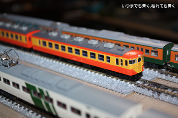 どちらも10年以上の古い製品ですが、動力車はすこぶる調子がいいです。スロー運転も問題なし。問題は185系の先頭車のライトか点灯しないこと。113系も点灯しなくて少し前に分解掃除したら点灯するようになりましたので、185系も分解掃除が必要なのでしょう。長い間通電していないとどこかの接触が悪くなるのかもしれません。 |