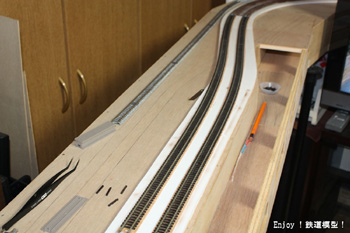右の写真の線路右側の部分が、もともとの勾配区間であり地下ヤードにしようと思っていたところです。