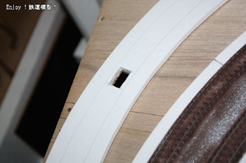 切り抜いた切れ端は運良くちゃんと残っていましたので、木工用ボンドを使ってきれいに埋めることができました。 |