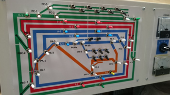 コントロールパネル左半分の走行電源供給スイッチ、ポイントスイッチのパネルです。 |