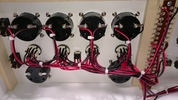 ひとつのトグルスイッチにはこれだけの配線をする必要があります。作業はまだまだ続きます。この土日の作業はここまでとなります。 |