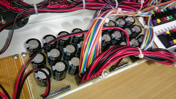 ポイント切換用トグルスイッチとポイントマシン駆動用コンデンサ基盤との接続も終わって、やっと内部配線が終わりました。