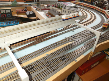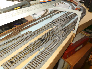 | HOのほうも少し線路配置変更。ヤードに向かうポイントを将来のために入れておきました。 |
