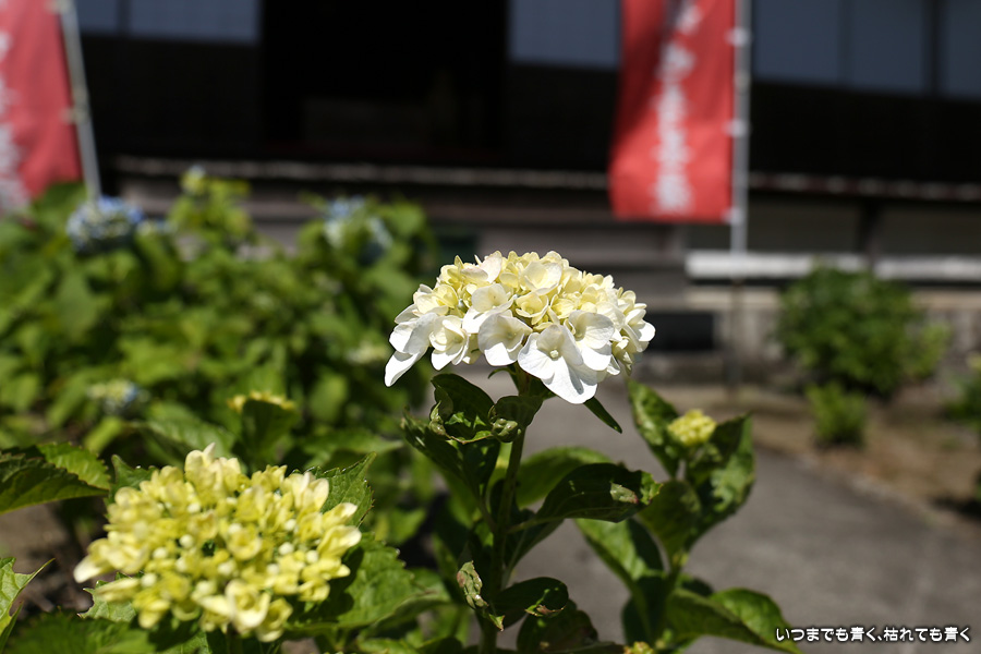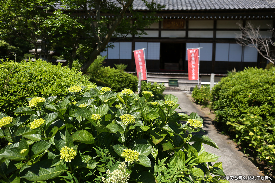 22022年6月4日に撮影した、岐阜県池田町・弓削禅寺の紫陽花の写真です。