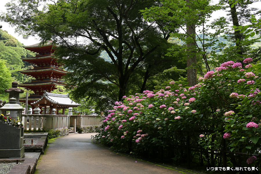 長谷寺の嵐の坂の「あぢさゐ回廊」以外の場所(一部嵐の坂の脇の写真もあります)での紫陽花です。紫陽花の花の写真だけならどこでも撮れますが、紫陽花の名所での写真は、その場所でしか撮れない写真を心がけています。そういう意味では今年の長谷寺の紫陽花の写真は、長谷寺ならではの写真がいろいろと撮れて楽しい撮影でした。