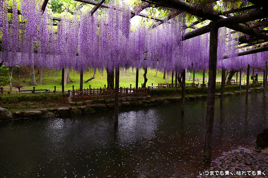 2018年4月20日に撮影した、愛知・津島の天王川公園で開催されている「尾張津島藤まつり」の藤の写真です。
