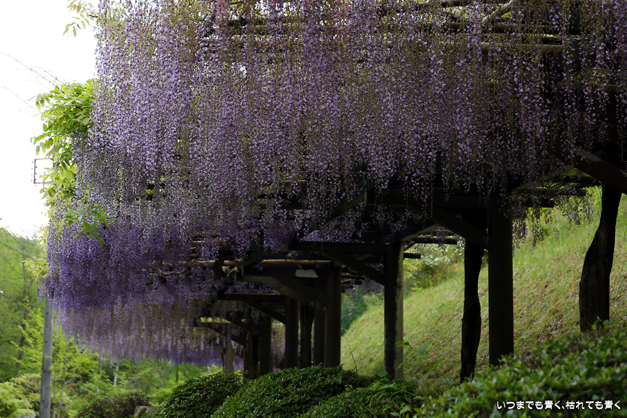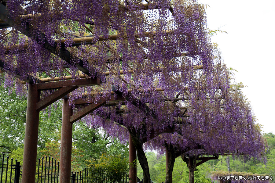 雨の降りそうな朝、人も少ないと思って藤岡のふじの回廊の藤の花の状況を見に行ってきました。もう遅いかなと思っていましたが、まだ楽しめる状況の花も残っていました。途中から本降りの雨が降り出してしまいましたので、ゆっくりと撮影することはできませんでした。