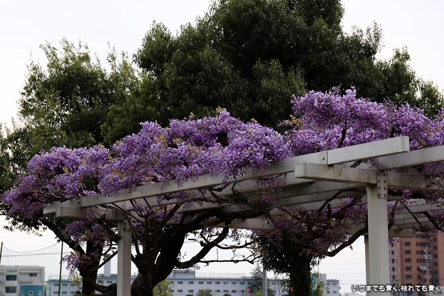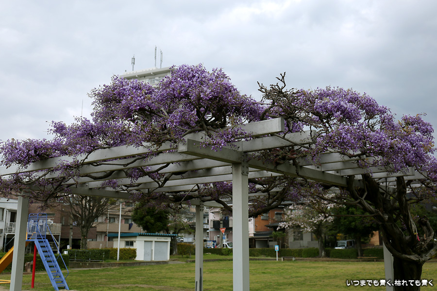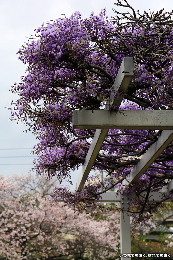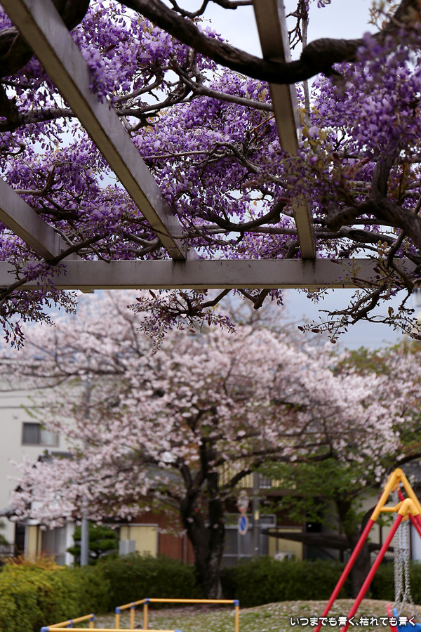 宗心洞公園は住宅街の普通の公園ですが、奥さんが藤が咲いていると教えてくれたので、カメラを持って行ってきました。住宅街なので絵になる景色ではありませんが、桜と藤というのは珍しい光景でした。