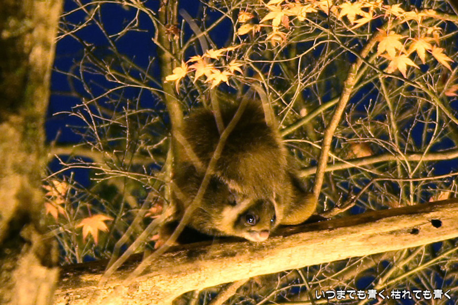 最後の4枚の写真は飯盛山で出会ったムササビです。遠くの木をふわりと移動していましたが、枝に居座っている時間を狙って200mmの望遠で撮影しました。なかなかピントが合わずに難しかったですが、かわいい顔は撮れたかなと思います。なお、写真は200mm望遠で撮った写真をトリミングしたものです。