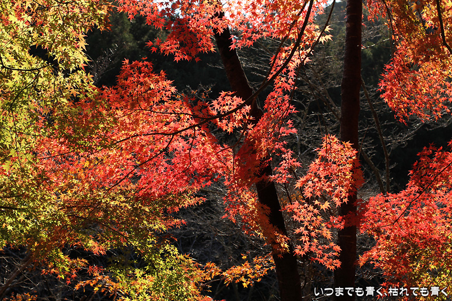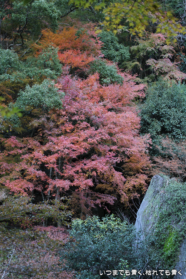 今年は京都の紅葉を楽しみに行けない悔しさを、近場の紅葉散策にぶつけています。昨日の香嵐渓に続き、今日は王滝渓谷を龍門橋から王滝湖かけ橋まで往復しました。今回は山道を長く歩くということで、家族は同行拒否だったのでひとりで散策でした。龍門橋、王滝湖かけ橋間を約3時間近くかけてのんびりと歩きましたが、不動山には登っていませんし、梟ヶ城址にも行っていませんし、宮川散策道も楽しめませんでした。もっと早く動き出さないとダメなくらいに広い場所です。カメラは、買ったばかりの「CANON EF40mm F2.8 STM」パンケーキレンズをEOS 7Dに装着して、王滝湖かけ橋までの往路(掲載写真の最初の15枚)をすべてこのレンズで撮影しました。単焦点レンズなので構図が難しいですが、体を動かして構図を決めて撮った写真はなかなかシャープで美しい絵です。2万円しない安価なレンズですが、使い勝手も絵もなかなか良くて楽しく使えそうです。