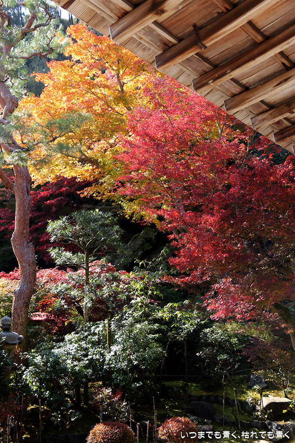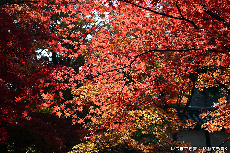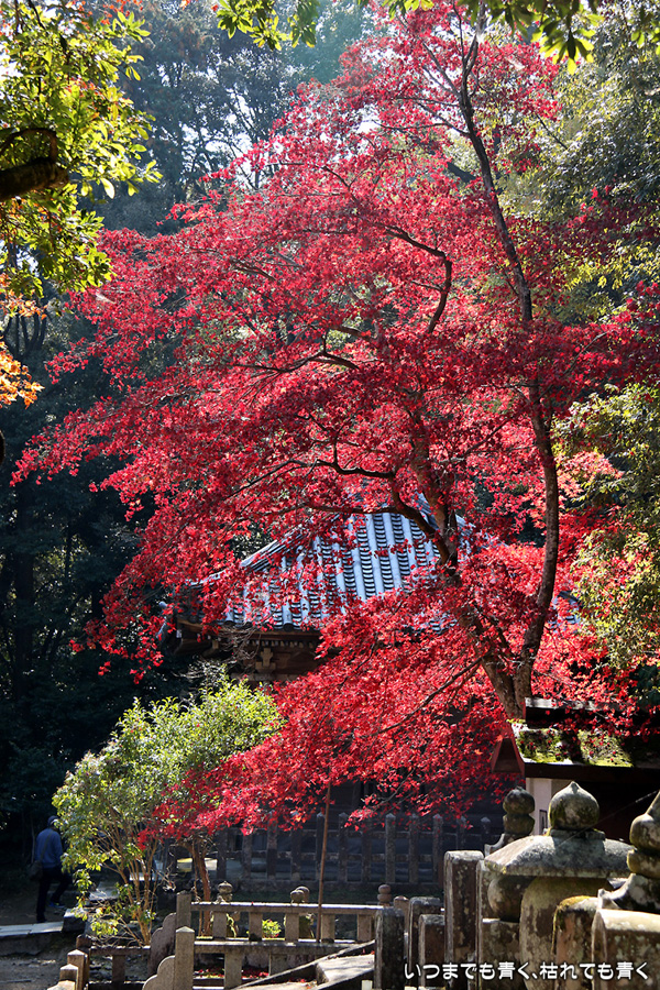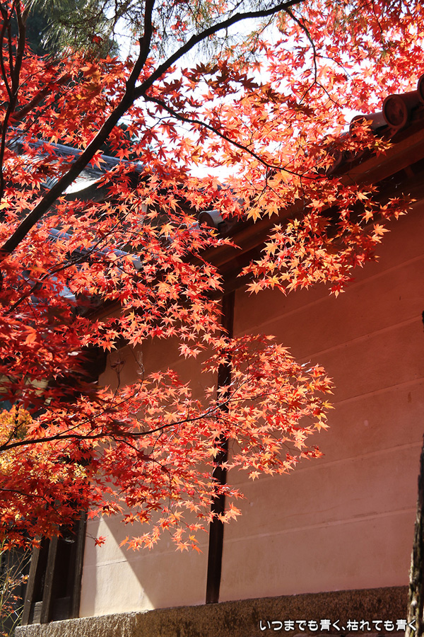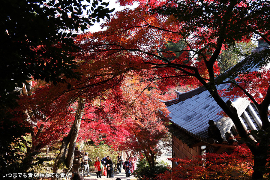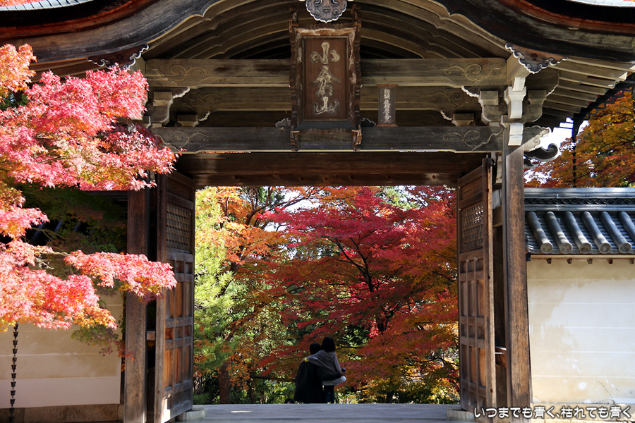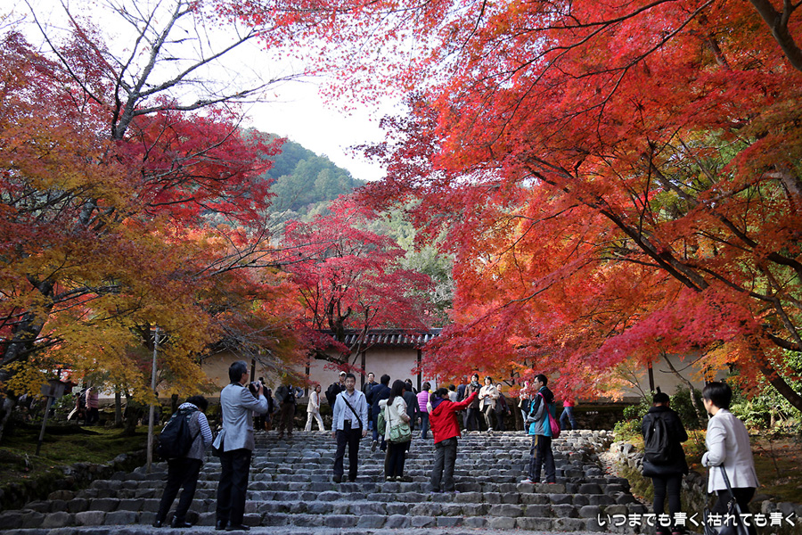 また京都に奥さんと長女と三人で行ってきました。二年ぶりの嵯峨野嵐山の紅葉狩りが目的です。紅葉の時期の嵐山はいつも使う駐車場が観光バス専用になりますので、右京区役所前のパーキングに車をおいて嵐電天神川駅から嵐電で嵯峨野嵐山にはいります。いつも思うのですが、京都は観光地にもかかわらず駐車料金は一日400円とか500円なので良心的です。嵯峨野に着いて定番の二尊院、祇王寺、常寂光寺をまわるだけで、非日常の時間はあっという間に過ぎてしまいます。戻ってきた夕方の渡月橋界隈はすごい人。渡月橋には長い人の列、交通規制のかかった道路は人・人・人・・・。こんなのは京都にはいらないぞと思ってしまうゆるキャラも出現しておりました。最初の二尊院の紅葉です。ここの紅葉をみなくては嵯峨野に来たとは言えないほどの定番のお釈迦様と阿弥陀様のお寺。まさに見ごろの紅葉と境内の雰囲気が最高に絵になるお寺です。