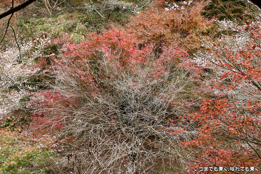 2015年11月23日に撮影した、愛知県豊田市・川見四季桜の里の四季桜と紅葉の写真です。