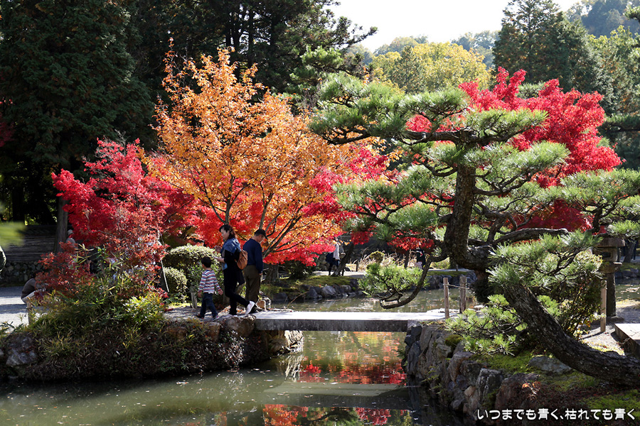 郡上八幡城から曽木公園に向かう帰路、友人が行ってよかったと教えてもらった虎渓山永保寺に立ち寄りました。永保寺庭園の紅葉は真っ赤に染まり、まさに今が見ごろでした。庭園の池やそこにかかる無際橋が紅葉とマッチして絵になります。これだけの庭園にもかかわらず拝観料や入園料は無料で、いつでも気楽に訪れることができます。奥にある虎渓公園では、春には桜が楽しめるようです。