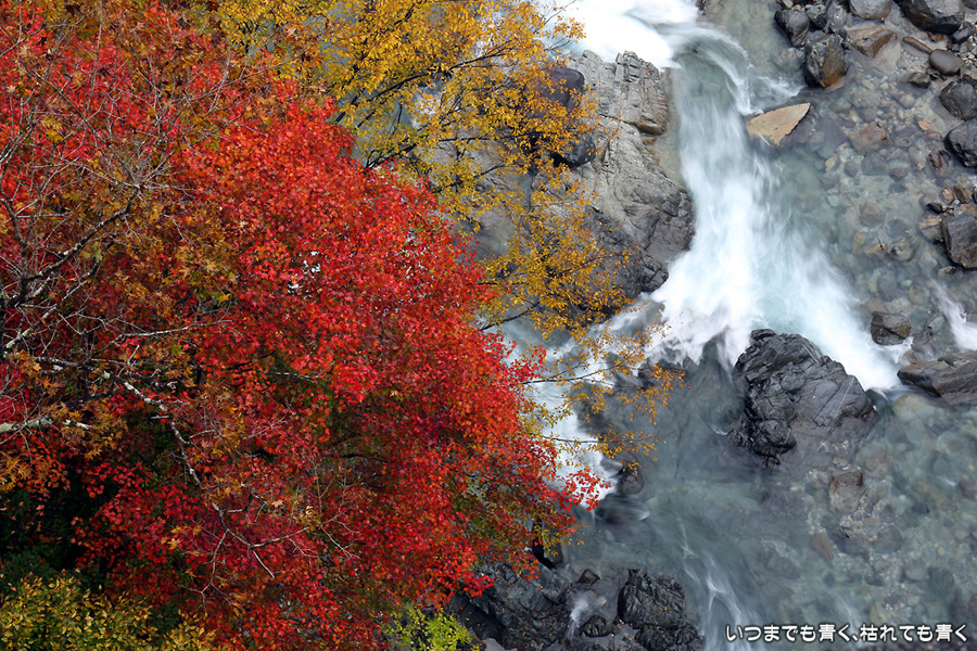 2017年11月4日に撮影した、岐阜県中津川市・付知峡の紅葉の写真です。