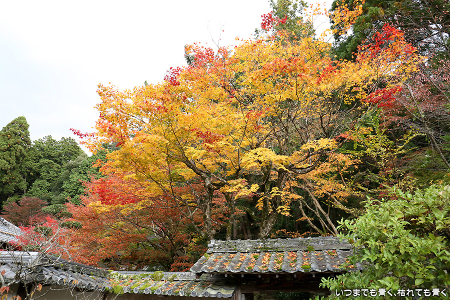 この前に来た時は参道を登るのがきつくて、本堂に着いた時には疲労困憊だった湖東三山金剛輪寺です。今日はその参道を軽快に登ることができました。先が見えていると気分が違うのかもしれません。紅葉は庭園が美しく色づいていましたが、三重塔のまわりの紅葉はこれからという感じでした。こういう場所は心落ち着きますね。