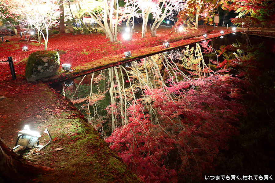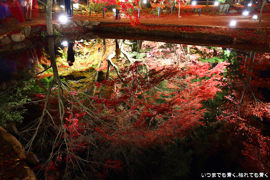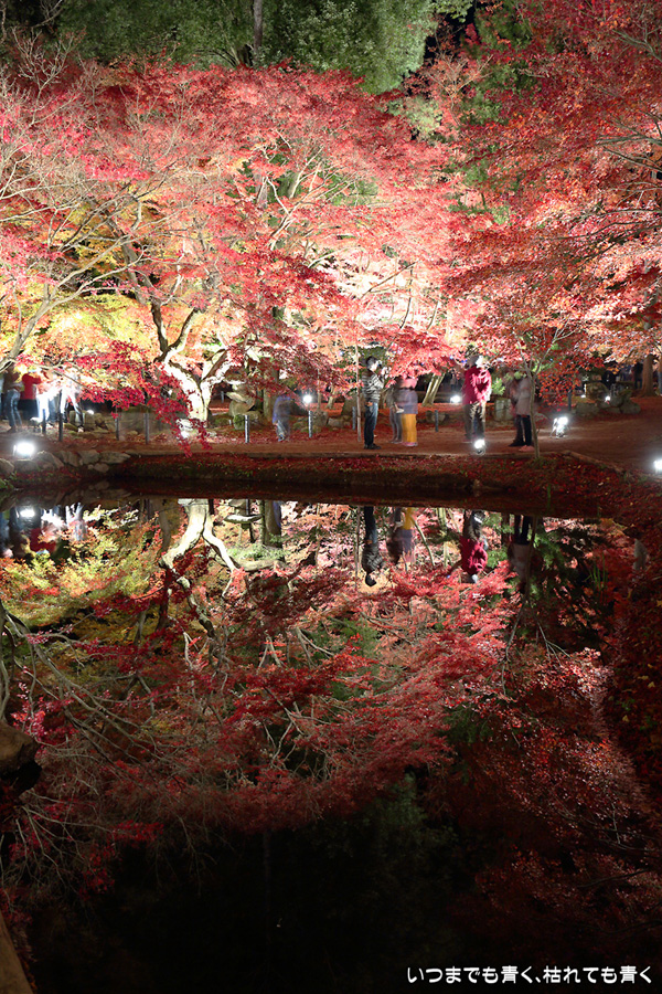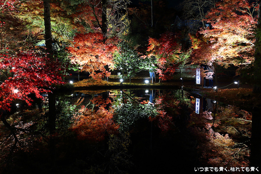 風がまったくない穏やかな日だったので、三重からの帰りに岐阜の曽木公園の逆さもみじを見に行くことにしました(帰り道といっても自宅を通りすぎた反対方向にあります)。気温5度、吐く息が白くなりそうな状況ですが、水面は微動だにせず美しく紅葉を映し込んで吸い込まれそうです。8時半頃になると風が出てきて水面が揺れ始めたので、撮影は区切りとしてあたたかいぜんざいをいただいて退散しました。