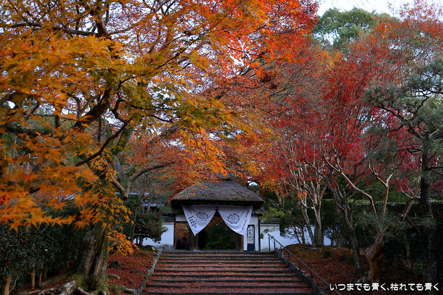 山門、参道は絵になる紅葉がまだ楽しむことができました。秋の一般公開中で本堂・書院・庭園を拝観することができましたが、境内や庭園の紅葉は残念ながらすでに見ごろは過ぎていました。