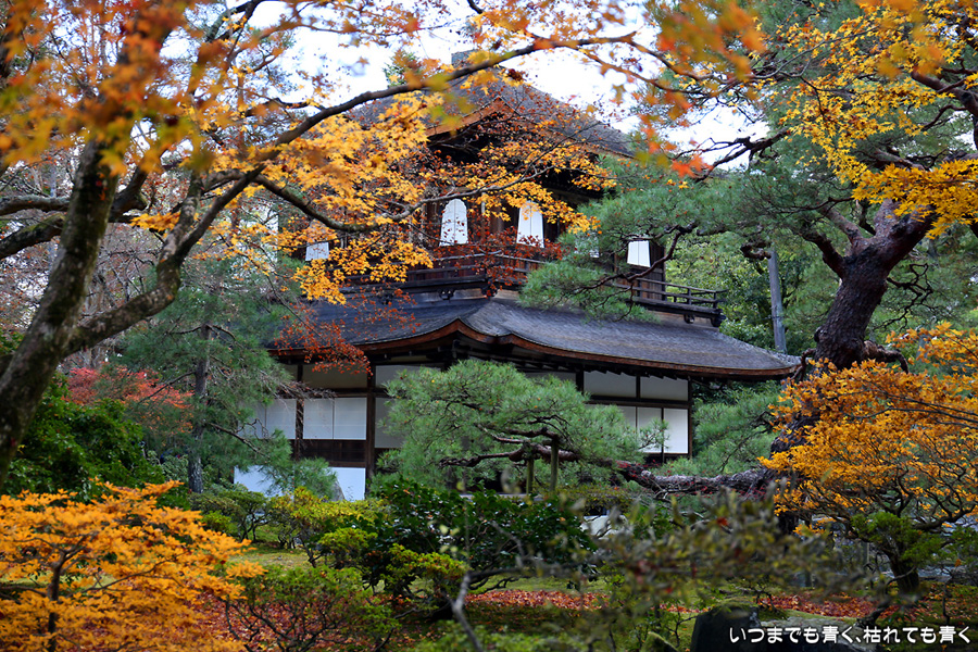 銀閣(観音殿)自体は地味な建物ですが、庭園と合わせて見ると、個人的には撮影ポイントが限られる金閣寺よりも絵になる情景が多いように思います。紅葉は時期的にそれほどでもなかったですが、初めての銀閣寺は思ったよりは好印象でした。