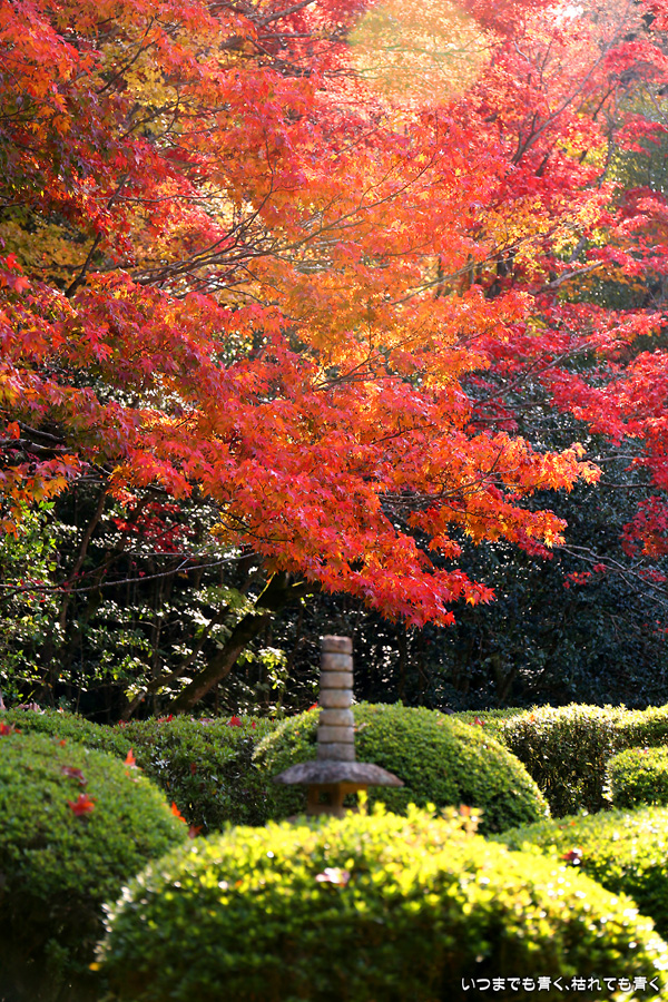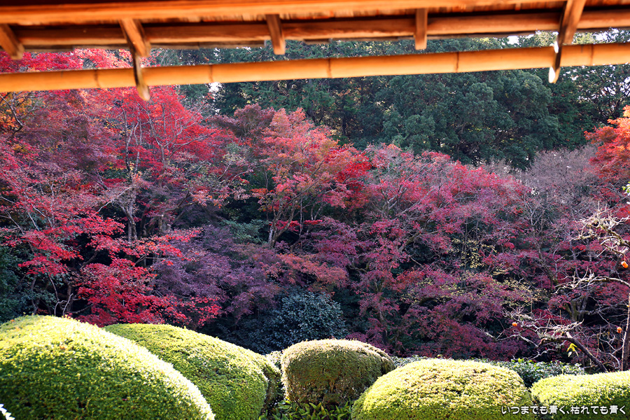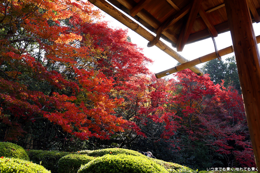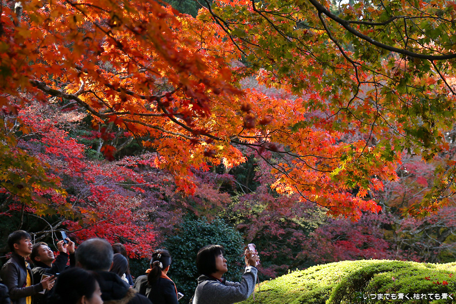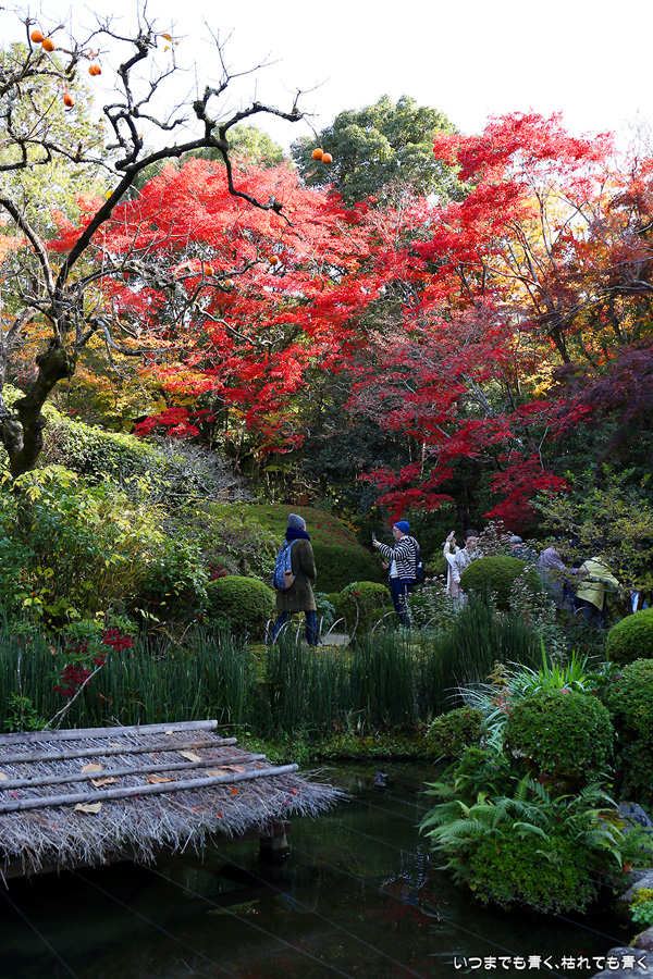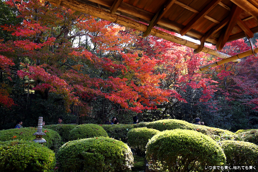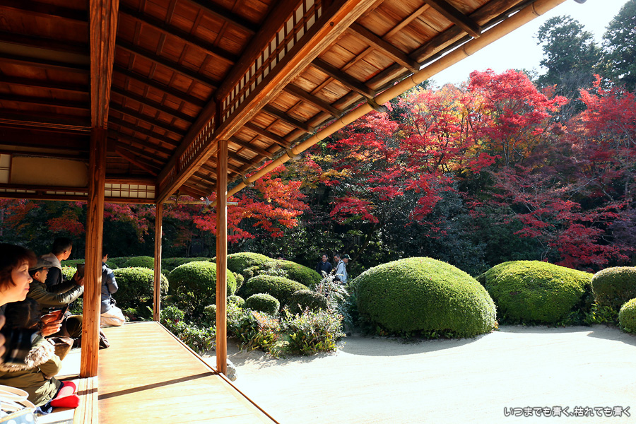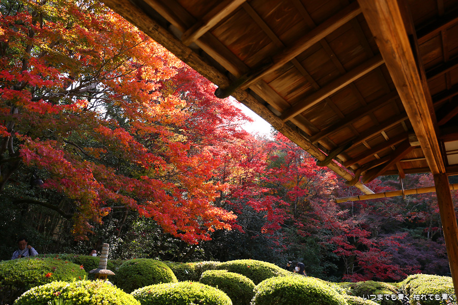 ここは昨年も訪れましたが、縁側から眺める庭園と紅葉何度きても見飽きることがありません。人気があるのも頷けます。縁側に座ってのんびりと庭と紅葉を眺めていたいのですが、さすがに人が多くてのんびりというわけにはいかないですし、次の紅葉の名所へいく時間もありますので、それがちょっと残念なところです。