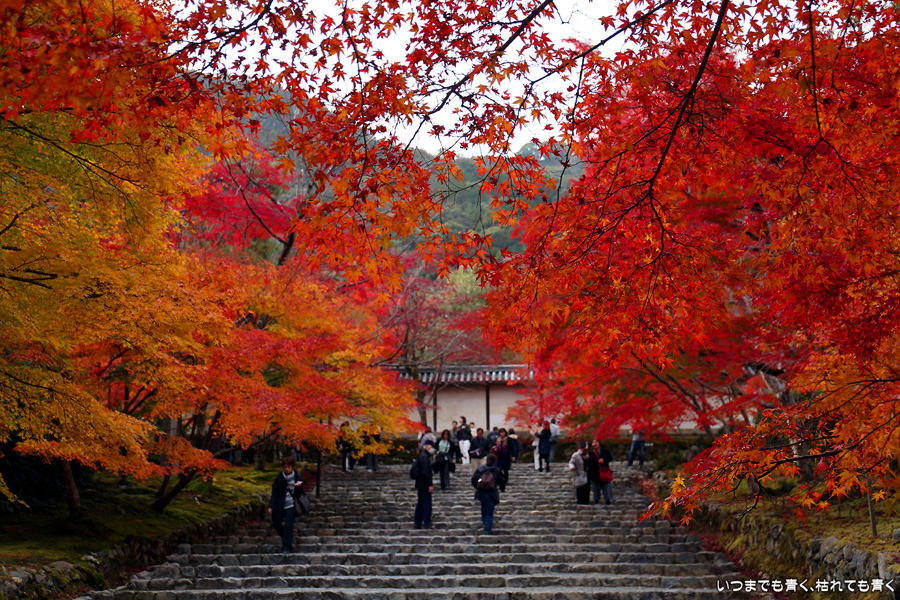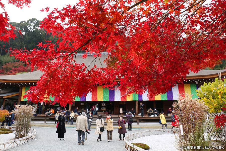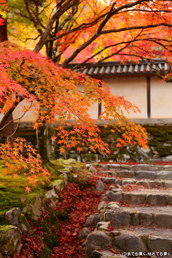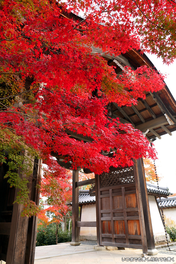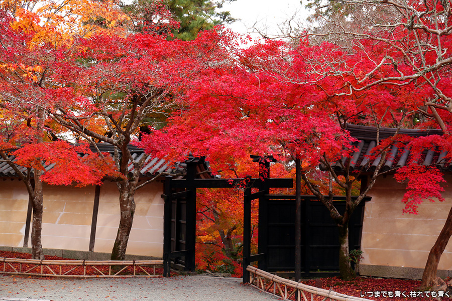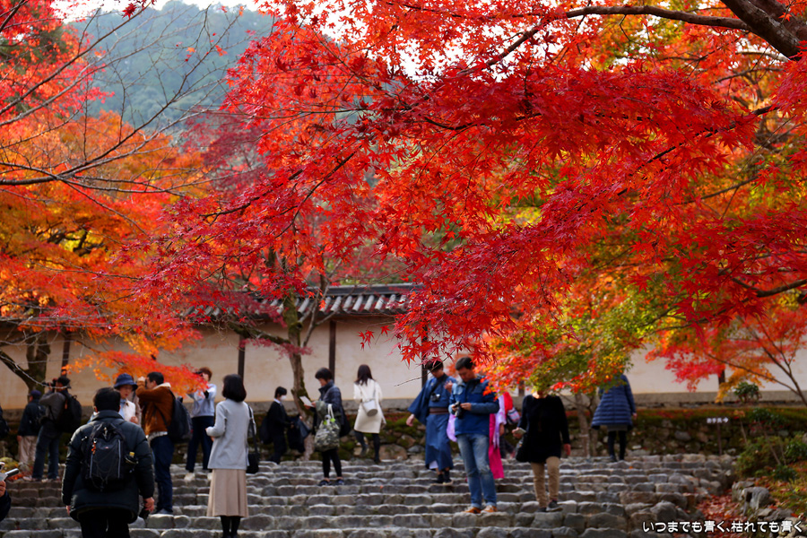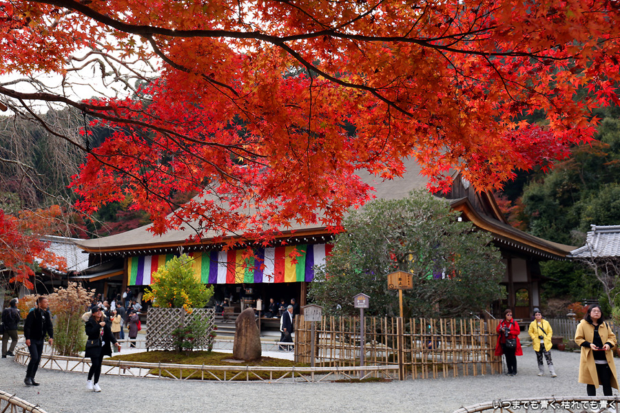 二尊院は京都嵐山の紅葉巡りの定番の場所です。私もここの紅葉は何度も見に来ています。モミジの馬場と呼ばれる参道の紅葉、勅使門や土塀際の紅葉が絵になってとても気分の高まる場所です。