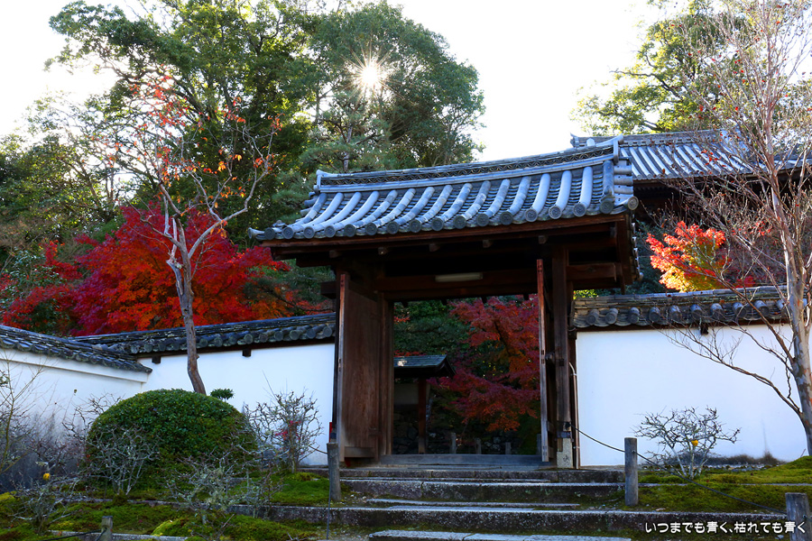 酬恩庵一休寺は、一休禅寺が人生の後半を過ごしたお寺です。昨年のJR東海「そうだ 京都、行こう」のポスターになったためにさらに人々に知られるようになりました。本堂の前の紅葉はすでに散り始めており、ポスターのような情景は目にすることはできませんでしたが、参道の紅葉は朝日を浴びて美しい赤色に染まっていました。