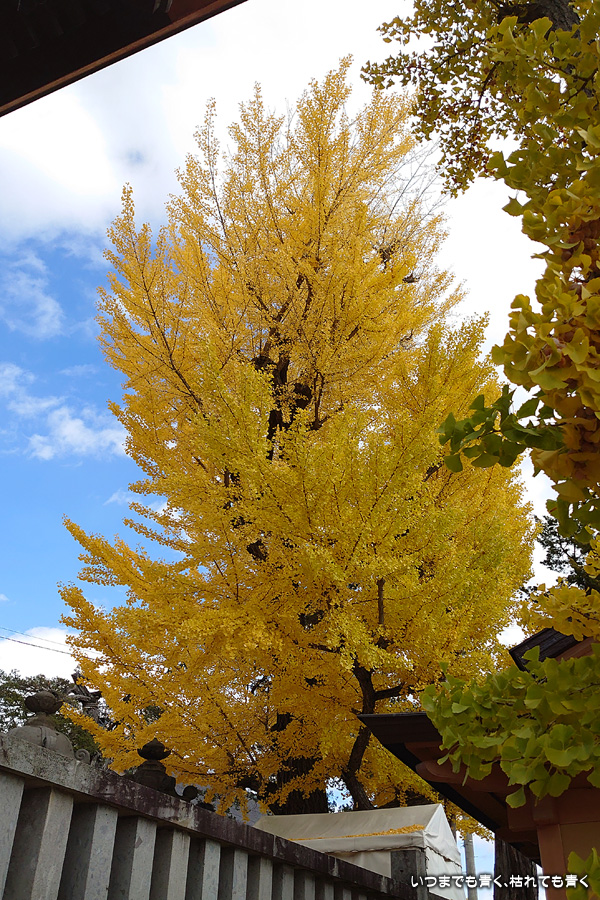 家族での参拝が主だったため、カメラは持たずスマホでの撮影です。真っ赤な紅葉が美しかったので撮影しました。イチョウはまだ少し青さが残っていましたが、美しく黄色に色づいていました。