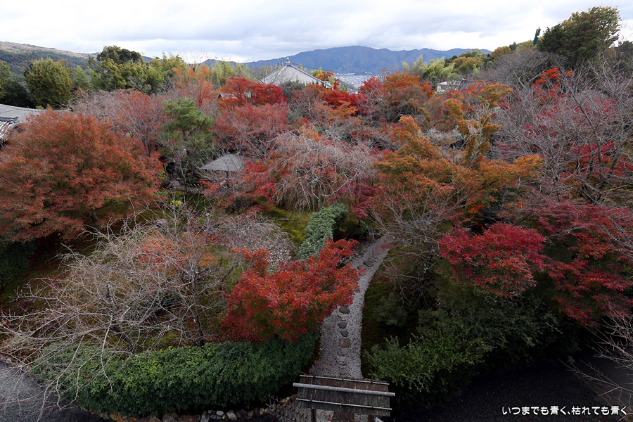 将軍塚青龍殿は京都市内を一望できる大舞台と回遊式庭園(最後に枯山水庭園あり)が見どころです。秋は紅葉、春は桜の名所となります。西展望台から見下ろす庭園と青龍殿の景色はとても素敵でした。