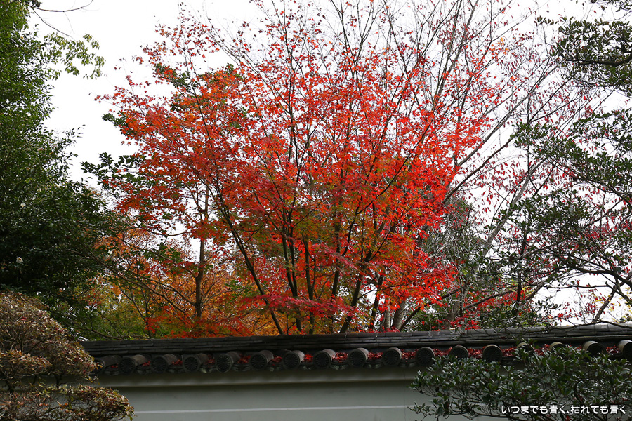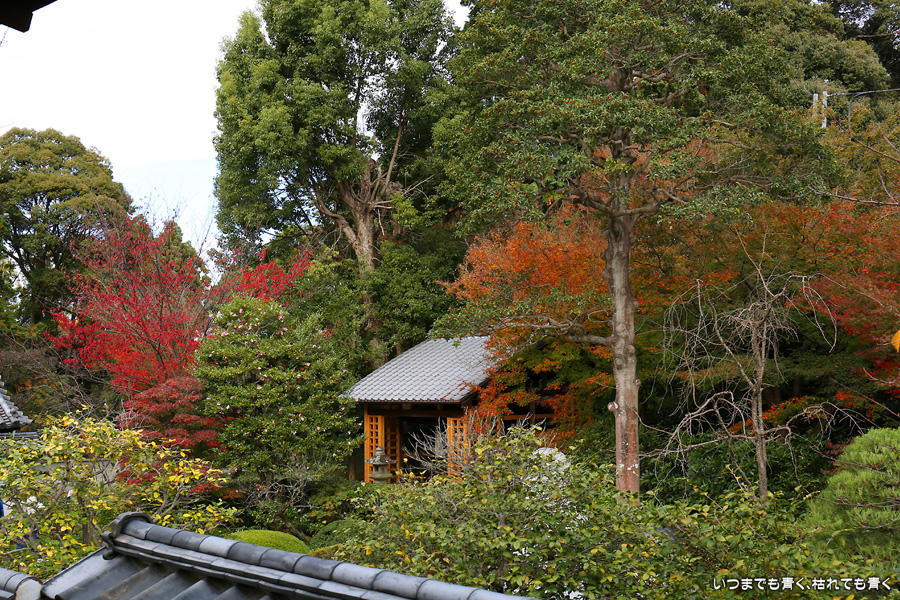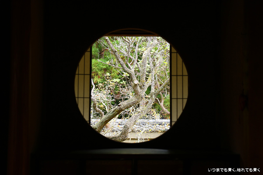 「色紙の窓」と呼ばれる四つの窓に、椿、燈籠、紅葉、松を入れて撮影できるのですが、当日はその知識もなく紅葉も散り始めていたので、そんな写真を撮ることもしませんでした。人も少なかったのに残念なことをしました。他にも源光庵のような丸い「悟りの窓」、「迷いの窓」があり、趣のある静かで落ち着くお寺でした。