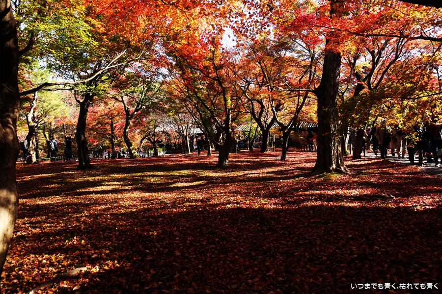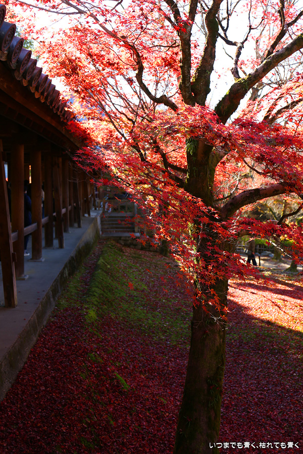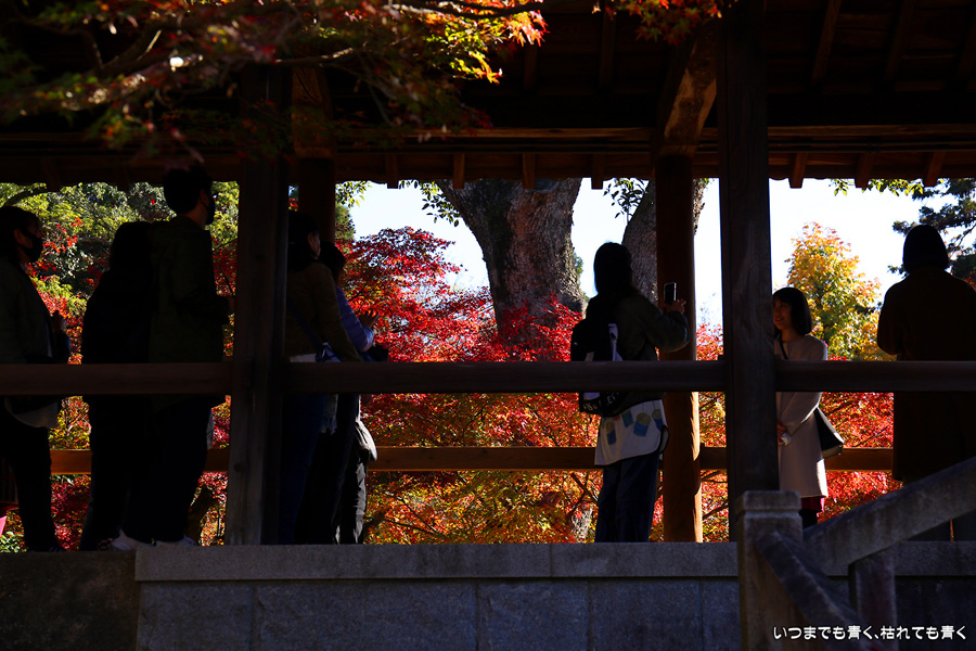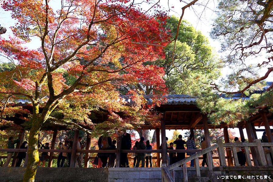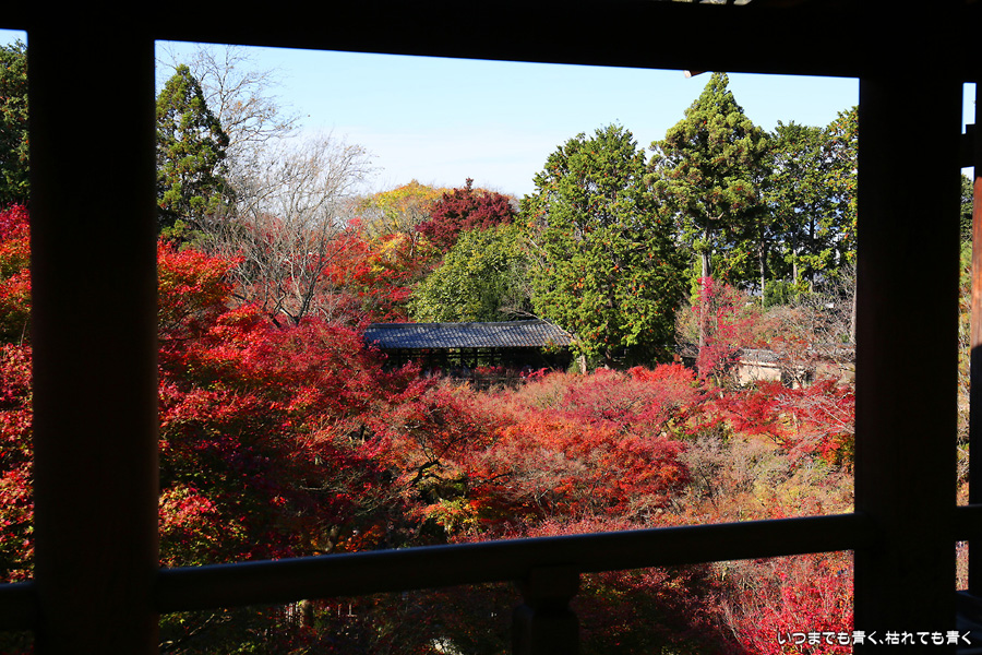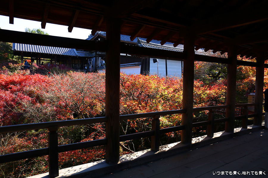 今回の京都3日間紅葉めぐりは、人の少ない穴場めぐりだったのですが、東福寺は何度も来ているのに最近は2015年から来ていないとわかって、どうしても東福寺の紅葉を見たくて混雑覚悟でやってきました。しかし、通天橋で人のいない写真が撮れるほど人が少なくて、嬉しい誤算でした。少し見ごろの時期が過ぎている感じはしますが、さすがに東福寺の紅葉は圧巻です。