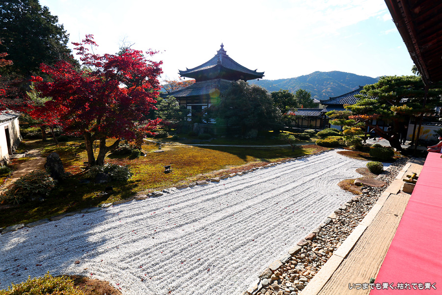 人がいっぱいの嵐山のエリアにあるのに、静かでゆったりとした時間を楽しめるお寺です。紅葉は美しく気品ある落ち着きを感じます。嵐山を借景とした庭園は、日本最古の平庭式枯山水庭園でとても心落ち着きます。