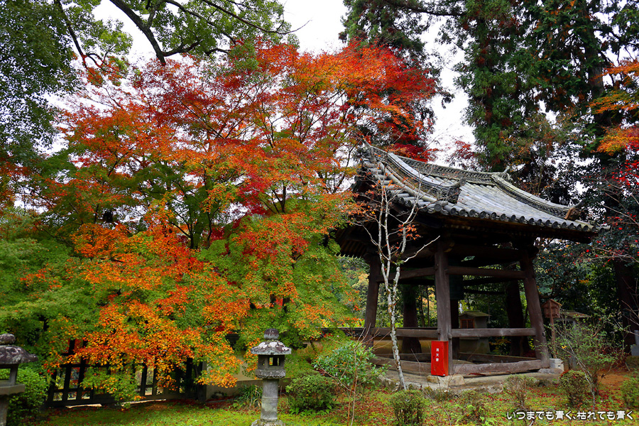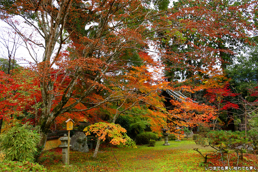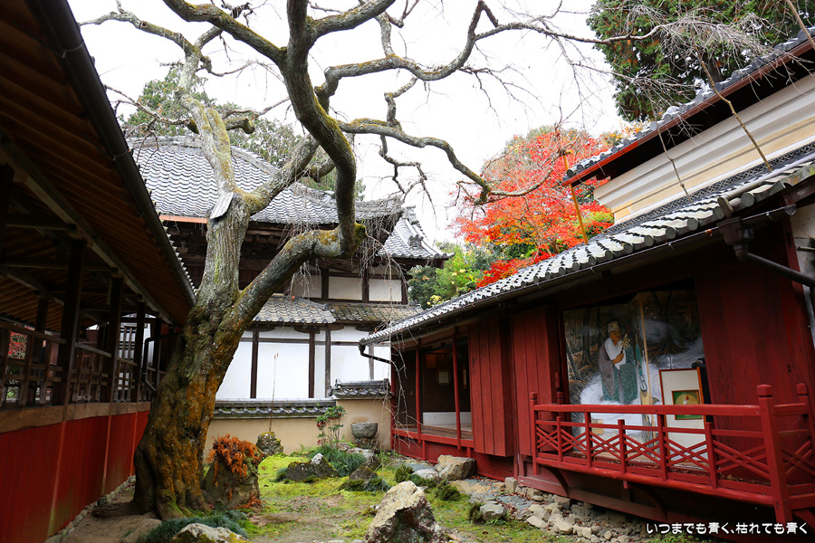 「京都3日間紅葉巡りぶらりひとり旅」の最後のお寺になります。このお寺はしだれ桜(樹齢200年なりひら桜)で「そうだ 京都、行こう」のポスターになったお寺です。昨年、善峯寺に行く途中通り過ぎたのですが、気になっていたので今年訪れてみました。訪問する人も少ないこじんまりとしたお寺ですが、私はこういうお寺が好きです。奥には在原業平のお墓があり、「なりひら寺」と呼ばれています。